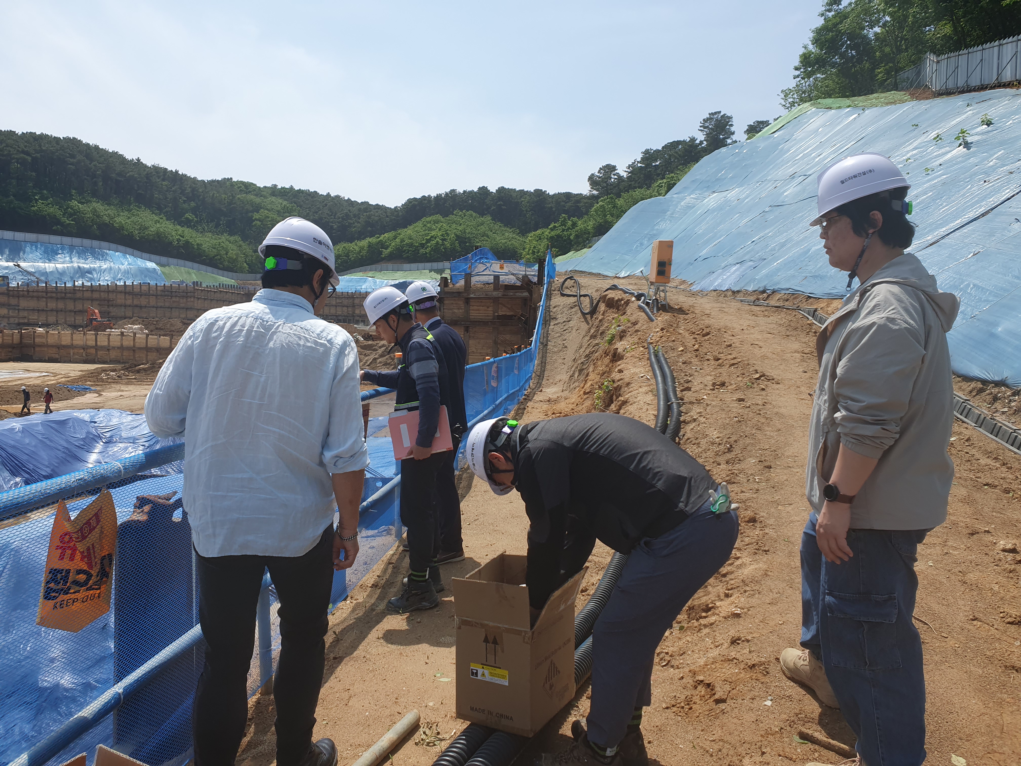 ▶ 건설현장의 토목공사 현장의 지반 침하 및 기울기 센싱 단말 시공